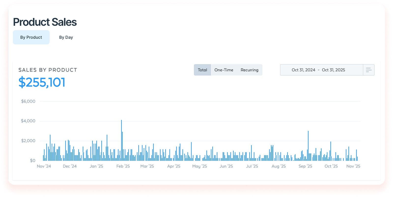 Over 12 months of traffic, tracked through GA4 and SamCart